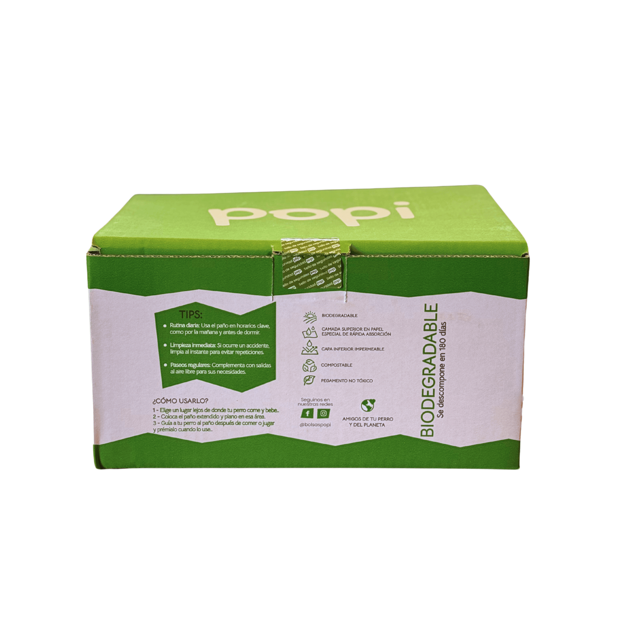 Los paños de entrenamiento Popi son ideales para enseñar a tu mascota a hacer sus necesidades en el lugar adecuado. Fabricados con materiales ecológicos, son 100% biodegradables y libres de plásticos, cuidando el medioambiente sin perder eficacia.