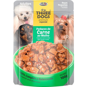 Pouch Perro Three Dogs Adulto Rza Pequeña 100grs (caja X12)
